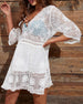 SPECIFICATIONS Style: Elegant Material: Cotton,Acrylic Occasion: Vacation Neckline: V neck_V Pattern Type: Solid Color Sleeve Type: Regular sleeve Sleeve Length: 3/4 Sleeve Top Type: Cover up Fit Type: Loose Details: Patchwork,Lace Package Includes: 1 x Cover up SIZE TABLE Size Shoulder Bust Sleeves Length CM INCH CM INCH CM INCH CM...