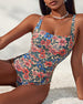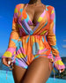 Vintage Printed Mesh Sun Protection Swimsuit