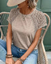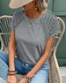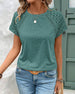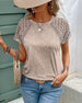 SPECIFICATIONS Top Type: T-shirt Style: Elegant Occasion: Daily Neckline: V neck_V Pattern Type: Solid Color Sleeve Type: Regular sleeve Sleeve Length: Short Sleeve Fit Type: Regular Season: Spring, Summer, Fall Material: Polyester Details: Patchwork, Lace Package Includes: 1 x T-shirt SIZE TABLE Size Bust Length Sleeve lengt...