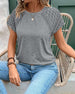 SPECIFICATIONS Top Type: T-shirt Style: Casual Material: Cotton Blends Occasion: Daily Neckline: Round Neck Pattern Type: Print Sleeve Type: Ruffle Sleeve Sleeve Length: Short Sleeve Fit Type: Regular Season: Spring,Summer Details: Patchwork,Hollow Out Package Includes: 1 x T-shirt SIZE TABLE Size Bust Shoulder Width Length C...