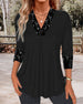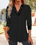 Lace cuff paneled solid color blouse