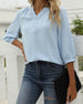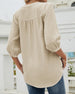 SPECIFICATIONS Top Type: Blouses Style: Casual Material: Cotton Blends Occasion: Daily Neckline: V neck_V Pattern Type: Striped Sleeve Length: 3/4 Sleeve Fit Type: Regular Season: Spring,Summer Details: Buttons Package Includes: 1 x Blouse SIZE TABLE Size Bust Length Sleeves Shoulder CM INCH CM INCH CM INCH CM INCH S 90 35.4...