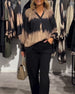 Sexy V-Neck Mesh And Solid Color Sequin Top