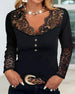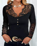 SPECIFICATIONS Top Type: Tops Style: Chic, Sexy Material: 35% Spandex, 65% Polyester Occasion: Daily Neckline: V neck_V Pattern Type: Solid Color Sleeve Type: Regular sleeve Sleeve Length: Long Sleeve Fit Type: Regular Season: Spring, Fall Details: Patchwork, Buttons, Hollow Out Package Includes: 1 x Tops SIZE TABLE Size ...
