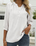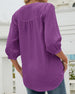 SPECIFICATIONS Top Type: Blouses Style: Casual Material: Cotton Blends Occasion: Daily Neckline: V neck_V Pattern Type: Print Sleeve Type: Regular sleeve Sleeve Length: 3/4 Sleeve Fit Type: Regular Season: Spring,Fall Details: Buttons Package Includes: 1 x Blouse SIZE TABLE Size Bust Length CM INCH CM INCH S 97 38.19 68 26.77 M...