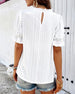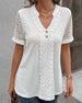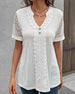 SPECIFICATIONS Top Type: Blouses Style: Casual Material: Cotton Blends Occasion: Daily Neckline: Round Neck Pattern Type: Solid Color Sleeve Type: Regular sleeve Sleeve Length: Short Sleeve Fit Type: Regular Season: Spring,Summer Details: Hollow Out Package Includes: 1 x Blouse SIZE TABLE Size Bust Length CM INCH CM INCH S 97 38....