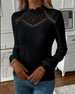 SPECIFICATIONS Top Type: Blouses Style: Casual Material: A: Cotton 100%, B: Polyester 100% Occasion: Daily Neckline: Round Neck Pattern Type: Solid Color Sleeve Type: Bat sleeve Sleeve Length: Long Sleeve Fit Type: Regular Season: Spring,Summer Details: See-through,Hollow Out Package Includes: 1 x Blouse SIZE TABLE Size Length...