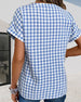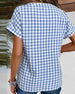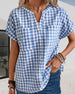SPECIFICATIONS Top Type: Blouses Style: Casual Material: Cotton Blends Occasion: Daily Neckline: V neck_V Pattern Type: Plaid, Print Sleeve Type: Raglan sleeve Sleeve Length: Short Sleeve Fit Type: Regular Season: Spring, Summer, Fall Package Includes: 1 x Blouse SIZE TABLE Size Bust Length cm inch cm inch S 95 37.4 67 26.4...