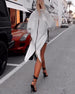 FEATURES Back Zipper: The sleek back zipper adds a modern touch, making it easy to wear and offering a seamless fit. Asymmetrical Design: The irregular, asymmetrical cut provides a chic and contemporary look, setting you apart from the crowd. Turn-down Collar: The classic turn-down collar adds a timeless elegance, suitable for both casual an...