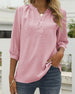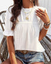 SPECIFICATIONS Top Type: T-shirt Style: Casual Material: Cotton Blends, Lace Occasion: Daily Neckline: V neck_V Pattern Type: Solid Color Sleeve Type: Regular sleeve Sleeve Length: Short Sleeve Fit Type: Regular Season: Spring, Summer, Fall Details: Patchwork, Buttons, Lace Package Includes: 1 x T-shirt SIZE TABLE Size Bust Len...