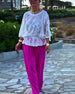 SPECIFICATIONS Top Type: Blouses Style: Elegant Material: Cotton Blends Occasion: Daily, Vacation Neckline: V neck_V Pattern Type: Solid Color Sleeve Type: Flare Sleeve Sleeve Length: Long Sleeve Fit Type: Regular Season: Fall, Winter Details: Ruffle Package Includes: 1 x Blouse SIZE TABLE Size Bust Length CM INCH CM INCH S 95 37.40 7...
