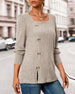 SPECIFICATIONS Top Type: Tops Style: Casual, Basics Material: Cotton Blends Occasion: Daily Neckline: Round Neck Sleeve Type: Lantern Sleeve Sleeve Length: Long Sleeve Fit Type: Regular Season: Spring, Fall, Winter Details: Buttons Package Includes: 1 x Top SIZE TABLE Size Bust Length Sleeve Shoulder CM INCH CM INCH CM INCH CM INCH ...