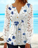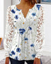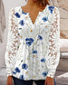 SPECIFICATIONS Top Type: Tops Style: Casual, Elegant Material: Cotton Blends, Lace Occasion: Daily Neckline: V neck_V Pattern Type: Floral, Print Sleeve Type: Regular sleeve Sleeve Length: Long Sleeve Fit Type: Regular Season: Spring, Summer, Fall Details: Hollow Out, Lace Package Includes: 1 x Top SIZE TABLE Size Bust Length...