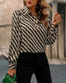 SPECIFICATIONS Top Type: Blouses Style: Elegant, Business Material: Cotton Blends Occasion: Daily, Work Neckline: V neck_V Pattern Type: Geometric Print Sleeve Type: Lantern Sleeve Sleeve Length: Long Sleeve Fit Type: Regular Season: Spring, Fall, Winter Package Includes: 1 x Blouse SIZE TABLE Size Bust Length CM INCH CM INCH...