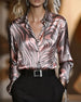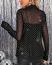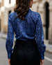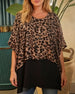 Lantern-Sleeve Sequined Leopard-Print Blouse