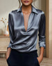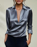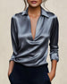 SPECIFICATIONS Top Type: Shirt Style: Chic,Business Material: Satin Occasion: Daily,Work Neckline: Shirt Collar Pattern Type: Color Block Sleeve Type: Regular sleeve Sleeve Length: Long Sleeve Fit Type: Regular Season: Spring,Fall Details: Buttons Package Includes: 1 x Shirt SIZE TABLE Size Bust Length CM INCH CM INCH S 97 38.19...