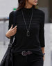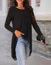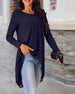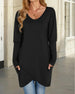 SPECIFICATIONS Top Type: Tops Style: Casual Material: Cotton Blends Occasion: Daily Neckline: V neck_V Pattern Type: Solid Color Sleeve Type: Regular sleeve Sleeve Length: Long Sleeve Fit Type: Regular Season: Fall,Winter Details: Irregular Package Includes: 1 x Top SIZE TABLE Size Bust Length CM INCH CM INCH S 97 38.19 65 25.59...