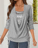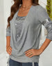 SPECIFICATIONS Top Type: Tops Style: Casual Material: Cotton Blends Occasion: Daily Neckline: Square Neck Sleeve Type: Regular sleeve Sleeve Length: 3/4 Sleeve Fit Type: Regular Season: Fall,Winter Package Includes: 1 x Top SIZE TABLE Size Bust Length CM INCH CM INCH S 97 38.19 65 25.59 M 101 39.76 66.5 26.18 L 105 41.34 68 ...