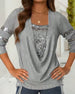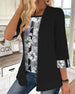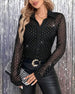 Lapel Solid Long-Sleeved Shirt And Lace Inner Set