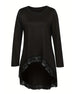 SPECIFICATIONS Top Type: Tops Style: Casual Material: Cotton Blends Occasion: Daily Neckline: Round Neck Pattern Type: Solid Color Sleeve Type: Regular sleeve Sleeve Length: Long Sleeve Fit Type: Regular Season: Fall,Winter Details: Irregular Package Includes: 1 x Top SIZE TABLE Size Bust Length CM INCH CM INCH S 97 38.19 65 25....