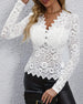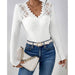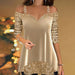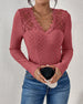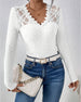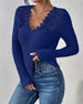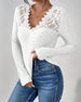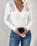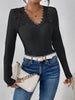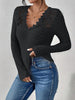 SPECIFICATIONS Top Type: Tops Style: Elegant Material: Cotton Blends Occasion: Daily Neckline: V neck_V Pattern Type: Solid Color Sleeve Type: Regular sleeve Sleeve Length: Long Sleeve Fit Type: Regular Season: Spring,Fall,Winter Details: Patchwork,Lace Package Includes: 1 x Top SIZE TABLE Size Bust Length CM INCH CM INCH S 97 3...