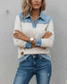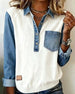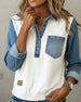 Fashionable Lapel Color Block Spliced Sweatshirt