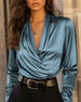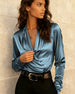 SPECIFICATIONS Top Type: Blouses Style: Elegant Material: Polyester Occasion: Daily,Party Neckline: V neck_V Pattern Type: Solid Color Sleeve Type: butterfly sleeve Sleeve Length: Nine Points Sleeve Fit Type: Regular Season: Spring,Fall Details: Zipper Package Includes: 1 x Blouse SIZE TABLE Size Bust Length CM INCH CM INCH S 97...