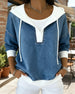 SPECIFICATIONS Top Type: Tops Style: Casual Material: Cotton Blends Occasion: Daily Neckline: Round Neck Sleeve Type: Regular sleeve Sleeve Length: Long Sleeve Fit Type: Regular Season: Spring,Fall Details: Fake two pieces Package Includes: 1 x Top SIZE TABLE Size Bust Length CM INCH CM INCH S 97 38.19 65 25.59 M 101 39.76 66....