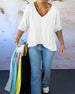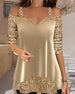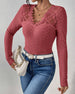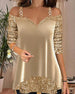 Elegant V-Neck Lace-Trimmed T-Shirt