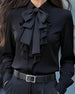 SPECIFICATIONS Top Type: Shirt Style: Casual Material: Cotton Blends Occasion: Daily Neckline: Stand Collar Pattern Type: Solid Color Sleeve Type: Regular sleeve Sleeve Length: Long Sleeve Details: Ruffle,Bowknot Package Includes: 1 x Shirt SIZE TABLE Size Bust Length CM INCH CM INCH S 97 38.19 65 25.59 M 101 39.76 66.5 26.18 ...