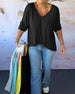 SPECIFICATIONS Top Type: Tops Style: Casual Material: 20%Artificial Cotton,5%Spandex,75%Polyester Occasion: Daily Neckline: V neck_V Pattern Type: Solid Color Sleeve Type: Regular sleeve Sleeve Length: Long Sleeve Fit Type: Regular Season: Spring, Summer, Fall Package Includes: 1 x Top SIZE TABLE Size Bust Length Sleeves H...