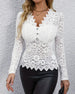 SPECIFICATIONS Top Type: Tops Style: Elegant Material: Cotton Blends,Lace Occasion: Daily Neckline: V neck_V Pattern Type: Solid Color Sleeve Type: Regular sleeve Sleeve Length: Long Sleeve Fit Type: Regular Season: Spring,Fall,Winter Details: Buttons,Irregular Package Includes: 1 x Top SIZE TABLE Size Bust Length CM INCH CM INCH S 95...
