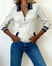 SPECIFICATIONS Top Type: Blouses Style: Casual Material: Cotton Blends Occasion: Daily Neckline: Shirt Collar Sleeve Type: Dropped shoulder Sleeve Length: Long Sleeve Fit Type: Regular Season: Spring,Fall,Winter Details: Patchwork Package Includes: 1 x Blouse SIZE TABLE Size Bust Length CM INCH CM INCH S 97 38.19 65 25.59 M 10...