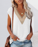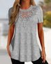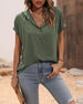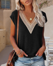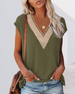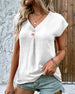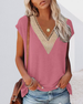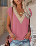 SPECIFICATIONS Top Type: T-shirt Style: Elegant Occasion: Daily Neckline: V neck_V Pattern Type: Solid Color Sleeve Type: Regular sleeve Sleeve Length: Short Sleeve Fit Type: Regular Season: Spring, Summer, Fall Material: Polyester Details: Patchwork, Lace Package Includes: 1 x T-shirt SIZE TABLE Size Bust Length Sleeve lengt...