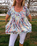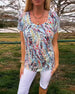 Butterfly Sleeve Round Neck Embroidered Blouse