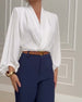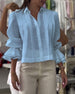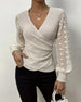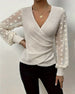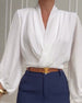 SPECIFICATIONS Top Type: Tops Style: Elegant Material: Cotton Blends Occasion: Daily,Work Neckline: V neck_V Pattern Type: Solid Color Sleeve Type: Lantern Sleeve Sleeve Length: Long Sleeve Fit Type: Regular Season: Spring,Fall Details: Patchwork,Shirred Package Includes: 1 x Top SIZE TABLE Size Bust Length CM INCH CM INCH S 97 3...