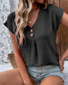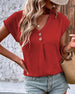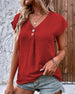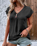 SPECIFICATIONS Top Type: T-shirt Style: Vacation Material: Cotton Blends Occasion: Daily Neckline: V neck_V Pattern Type: Solid Color Sleeve Type: Regular sleeve Sleeve Length: Short Sleeve Fit Type: Regular Season: Spring, Summer, Fall Details: Buttons Package Includes: 1 x T-shirt SIZE TABLE (cm) Size Bust Length Sleeve l...