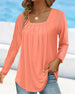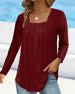 SPECIFICATIONS Top Type: Tops Style: Casual Material: Cotton Blends Occasion: Daily Neckline: Square Neck Pattern Type: Solid Color Sleeve Type: Regular sleeve Sleeve Length: Long Sleeve Fit Type: Regular Season: Spring, Summer, Fall Details: Shirred Package Includes: 1 x Top SIZE TABLE Size Bust Length Sleeve Length CM INC...