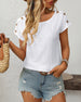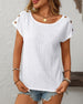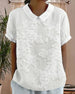 SPECIFICATIONS Top Type: Blouses Style: Casual Material: Cotton Blends Occasion: Daily Neckline: Round Neck Pattern Type: Solid Color Sleeve Type: Regular sleeve Sleeve Length: Short Sleeve Fit Type: Regular Season: Summer Details: Buttons,Hollow Out Package Includes: 1 x Blouse SIZE TABLE Size US Bust Length Sleeve CM INCH CM INC...