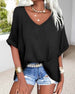 V-Neck Rolled-Hem Short-Sleeved Loose T-Shirt