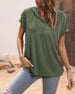 SPECIFICATIONS Top Type: T-shirt Style: Casual, Business Material: Cotton Blends Occasion: Daily, Work Neckline: V neck_V Pattern Type: Solid Color Sleeve Type: Ruffle Sleeve Sleeve Length: Short Sleeve Fit Type: Regular Season: Spring, Summer, Fall Details: Cut Out Package Includes: 1 x T-shirt SIZE TABLE Size Bust Length CM...