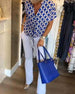 SPECIFICATIONS Top Type: Blouses Style: Casual Material: Cotton Blends Occasion: Daily Neckline: Round Neck Pattern Type: Print Sleeve Type: Bat sleeve Sleeve Length: 3/4 Sleeve Fit Type: Regular Season: Spring, Summer, Fall Package Includes: 1 x Blouse SIZE TABLE Size Bust Length CM INCH CM INCH S 95 37.4...