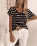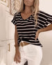 SPECIFICATIONS Top Type: Tops Style: Casual Material: 6% Spandex, 94% Polyester Occasion: Daily Neckline: V neck_V Pattern Type: Striped Sleeve Type: Regular sleeve Sleeve Length: Short Sleeve Fit Type: Regular Season: Spring, Summer, Fall Package Includes: 1 x Top SIZE TABLE Size Bust Length CM INCH CM INCH S...