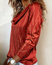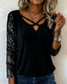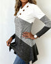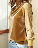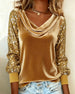 SPECIFICATIONS Top Type: Tops Style: Casual Material: Cotton Blends Occasion: Daily Neckline: Draped Collar Pattern Type: Sequin Sleeve Type: Regular sleeve Sleeve Length: Long Sleeve Fit Type: Regular Season: Spring,Fall,Winter Details: Patchwork Package Includes: 1 x Top SIZE TABLE Size Bust Length CM INCH CM INCH S 97 38.19 6...