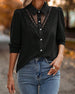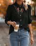 SPECIFICATIONS Top Type: Blouses Style: Casual Material: Cotton Blends,Lace Occasion: Daily Neckline: Lapel Sleeve Type: Puff Sleeve Sleeve Length: Long Sleeve Fit Type: Regular Season: Spring,Fall Details: Patchwork,Shirred Package Includes: 1 x Blouse SIZE TABLE Size Bust Length CM INCH CM INCH S 97 38.19 65 25.59 M 101 39.7...