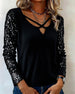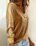 SPECIFICATIONS Top Type: Tops Style: Casual Material: Cotton Blends Occasion: Daily Neckline: V neck_V Pattern Type: Sequin Sleeve Type: Regular sleeve Sleeve Length: Long Sleeve Fit Type: Regular Season: Fall,Winter Package Includes: 1 x Top SIZE TABLE Size Bust Length CM INCH CM INCH S 97 38.19 65 25.59 M 101 39.76 66.5 26.1...