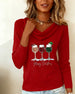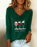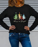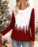 Long-Sleeved Crew Neck Christmas Tree Print Top