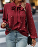 SPECIFICATIONS Top Type: Blouses Style: Elegant Material: Cotton Blends Occasion: Daily Pattern Type: Solid Color Sleeve Type: Puff Sleeve Sleeve Length: Long Sleeve Fit Type: Regular Season: Spring,Fall Details: Pearl Package Includes: 1 x Blouse SIZE TABLE Size Bust Length CM INCH CM INCH S 92 36.22 65 25.59 M 96 37.8 66.5 26.18 ...