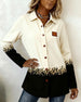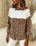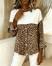 Mid-Length V-Neck Leopard Print Sweatshirt