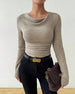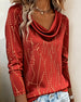 SPECIFICATIONS Top Type: Knit Tops Style: Casual Material: Cotton Blends Occasion: Daily Neckline: Draped Collar Pattern Type: Solid Color Sleeve Type: Regular sleeve Sleeve Length: Long Sleeve Fit Type: Regular Season: Fall,Winter Package Includes: 1 x Knit Top SIZE TABLE Size Bust Length CM INCH CM INCH S 92 36.22 68 26.77 M 96 37.8...